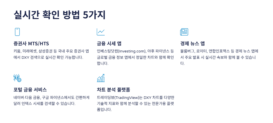많은 분들이 가장 먼저 궁금해하는 것이 바로 달러 인덱스 실시간 확인 방법입니다. 생각보다 확인 방법은 어렵지 않습니다. 국내 증권사 앱이나 해외 금융 시세 플랫폼에서 쉽게 확인할 수 있으며, 보통 DXY, 달러지수, USD Index로 검색하면 바로 나옵니다.